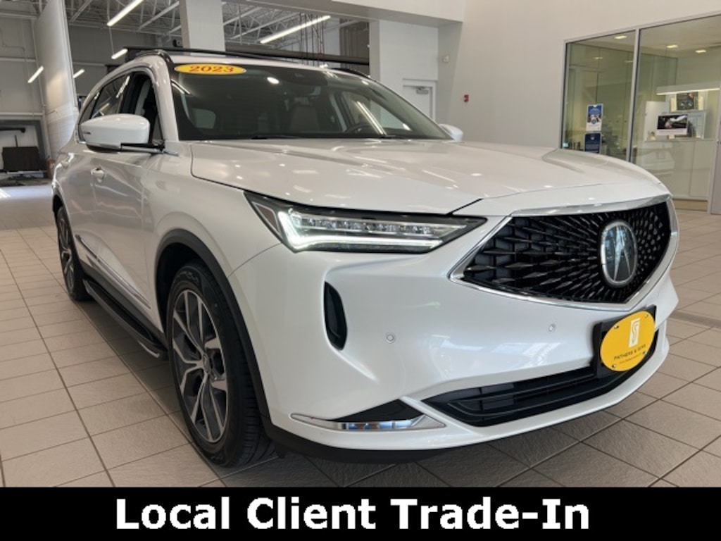 LOCATED AT 434 MEMORIAL AVE!! LOCAL CLIENT TRADE-IN!! Passed our Comprehensive Quality Inspection and Recently Serviced with Oil Change. CARFAX One-Owner. Platinum White Pearl 2023 Acura MDX Technology SH-AWD AWD 10-Speed Automatic 3.5L V6 SOHC i-VTEC 24V Parchment w/Leatherette Trimmed Seats.