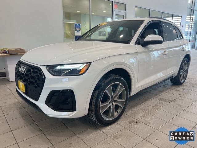 Carfax One Owner, Complete Service Records, Sold New Here, Still Under Factory Warranty, Local Client Trade in on New Audi, Excellent Condition Both Inside and Out, Passed our Comprehensive Quality Inspection and Recently Serviced with Oil Change.**Price excludes, tax, title, and registration fees. Includes, $799 Dealer Documentation fee. CARFAX One-Owner. Clean CARFAX. Arkona White 2025 Audi Q5 45 S line Premium quattro quattro 7-Speed Automatic S tronic 2.0L Turbocharged Atlas Beige Leather, 17" Alloy wheels, ABS brakes, Active Cruise Control, Compass, Electronic Stability Control, Front dual zone A/C, Heated door mirrors, Heated front seats, Heated Front Sport Seats, Illuminated entry, Low tire pressure warning, Power Liftgate, Remote keyless entry, Traction control.