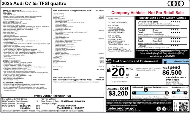 2025 Q7 55 TFSI quattro ORIGINAL MSRP $79,040!
